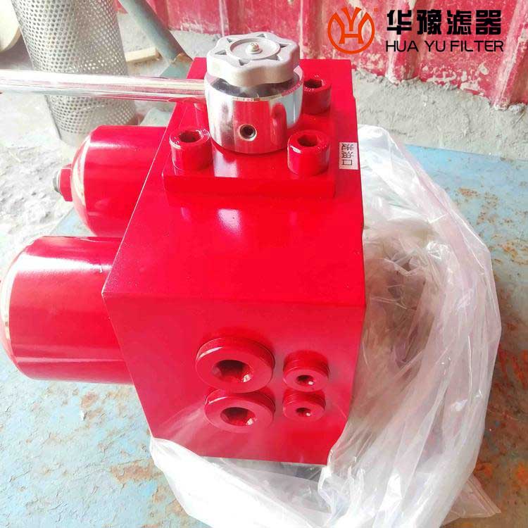 它的工作特點是當(dāng)一只過濾器濾芯堵塞需要更換時,不需要停止主機工作,只要打開壓力平衡并轉(zhuǎn)動換向閥,另一只過濾器即可參加工作,然后更換已堵塞的濾芯。
